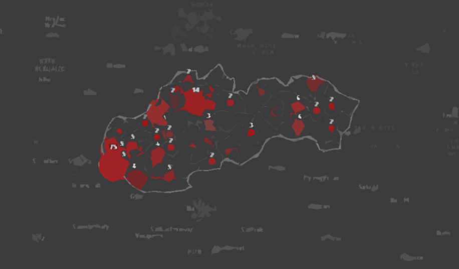 Mapa výskytu ochorenia Covid-19 na Slovensku